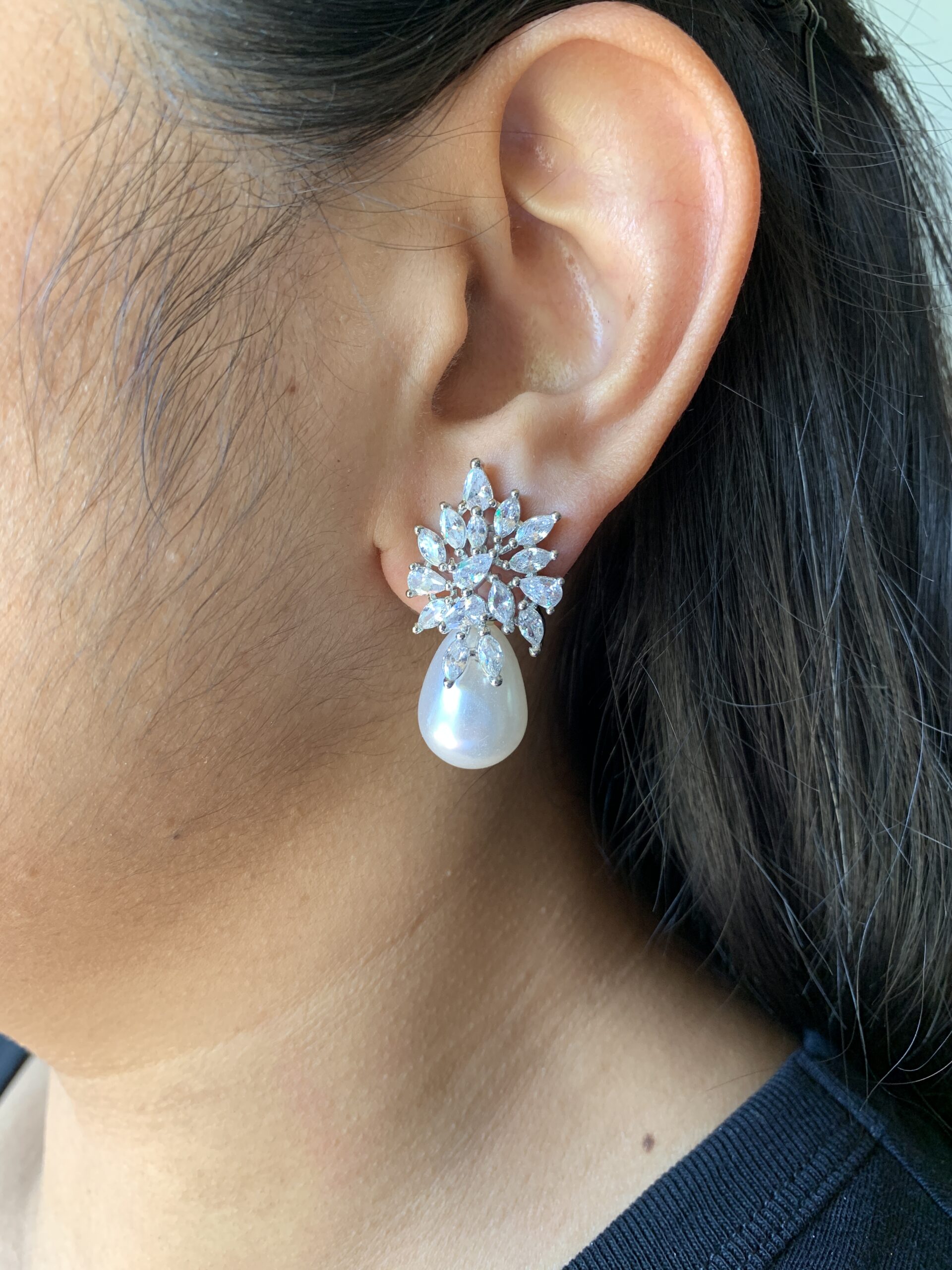 Marquise Waterfall Pearl Drop Dangler Earrings