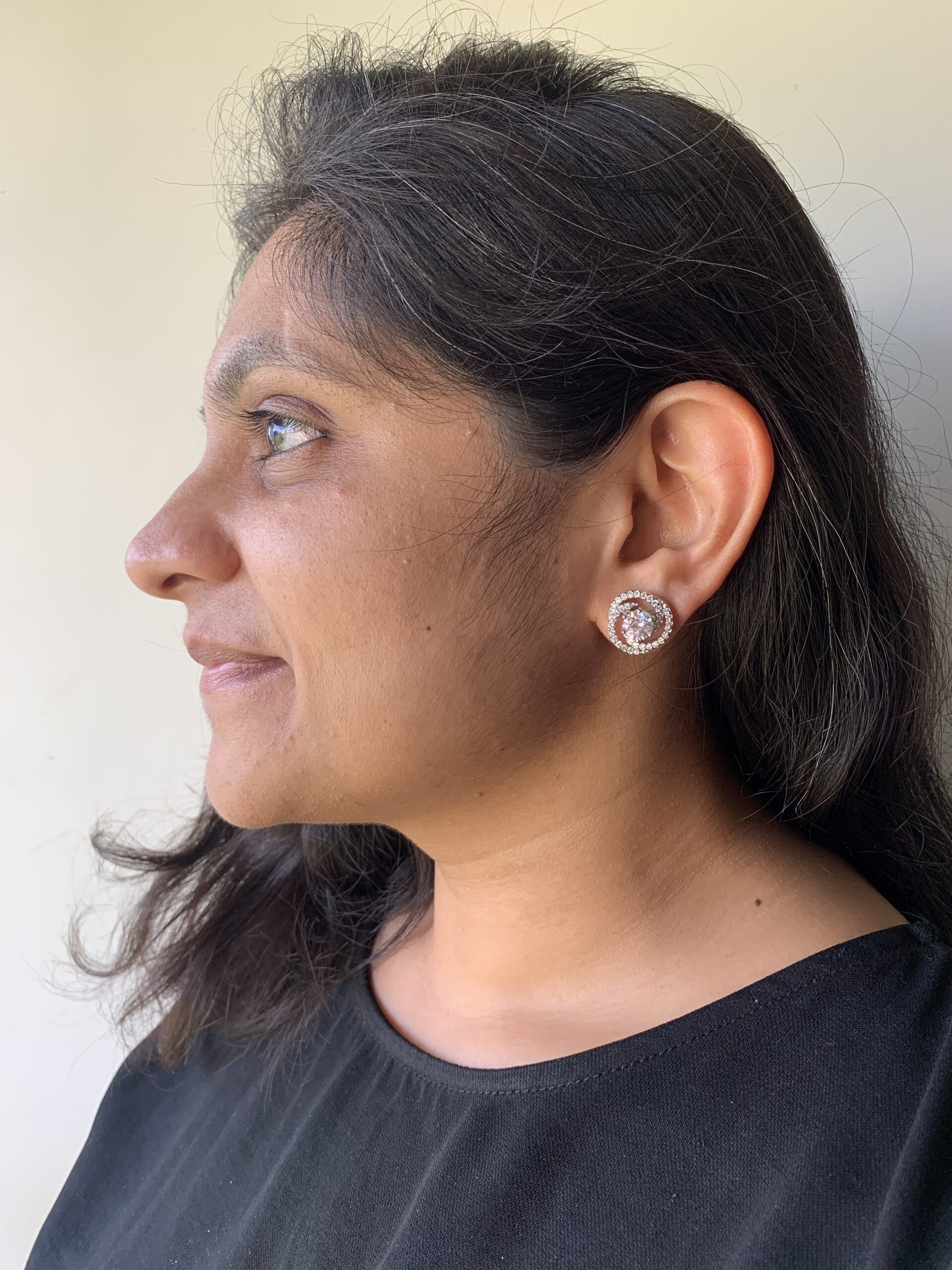 Detachable Round Solitaire With Round Small Line Ring Stud Earrings
