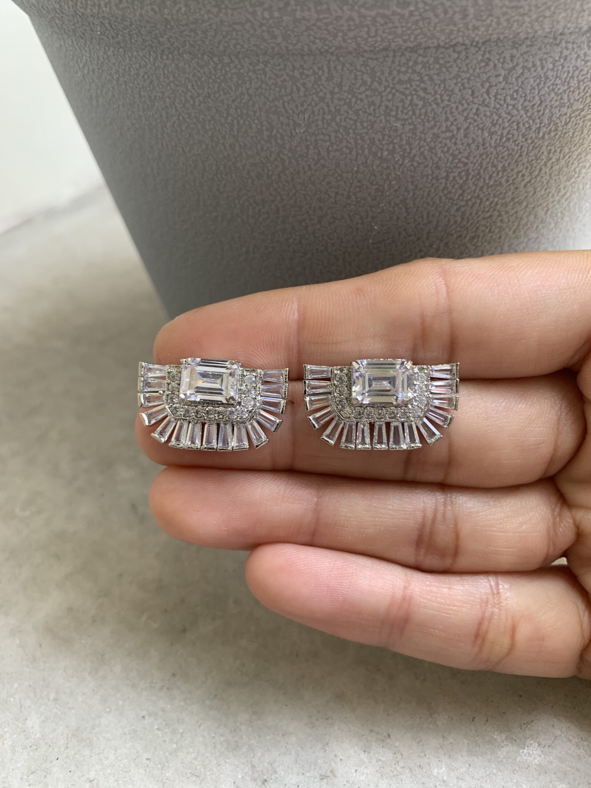 Emerald Cut Half Moon Baguette Stud Earrings