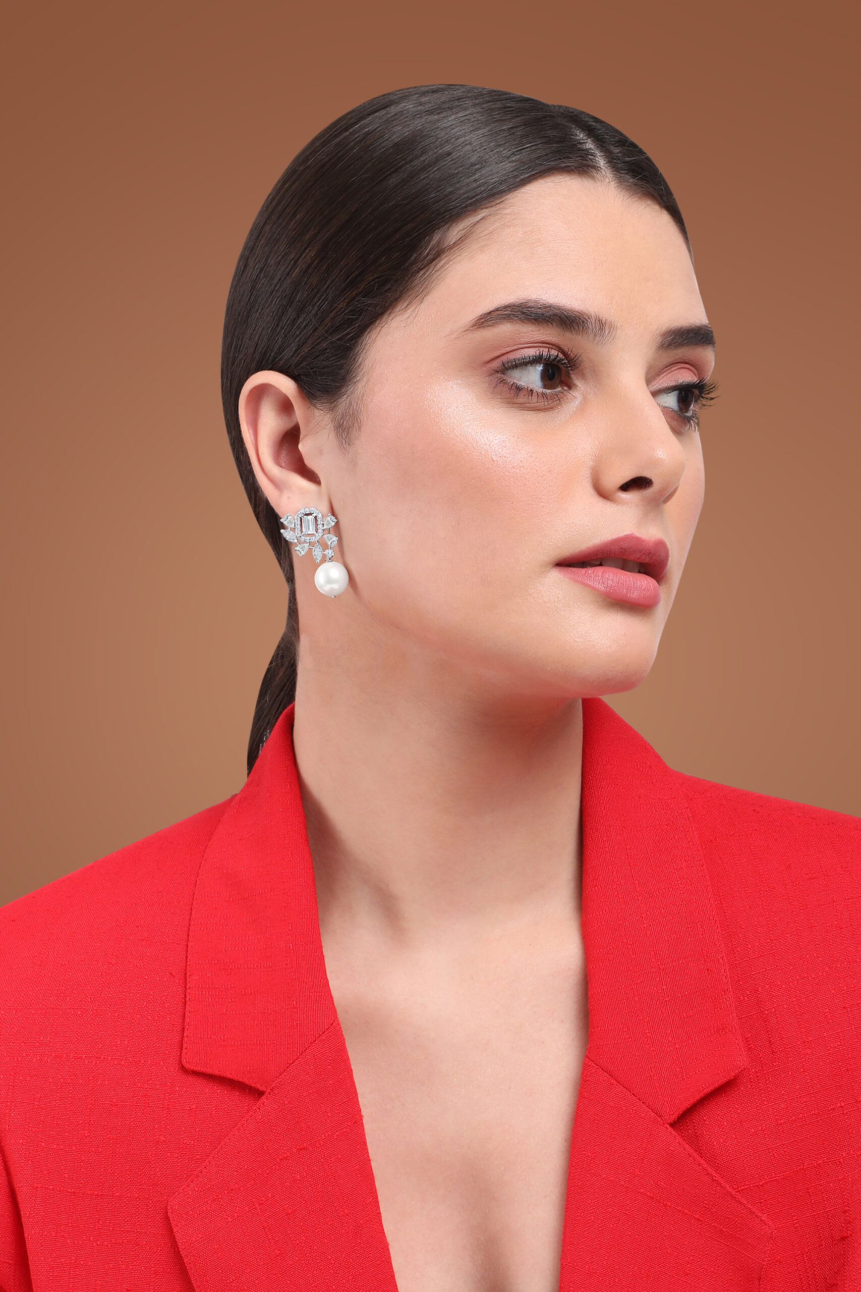 Lopsided Emerald Cut Pear And Marquise Pearl Drop Earrings
