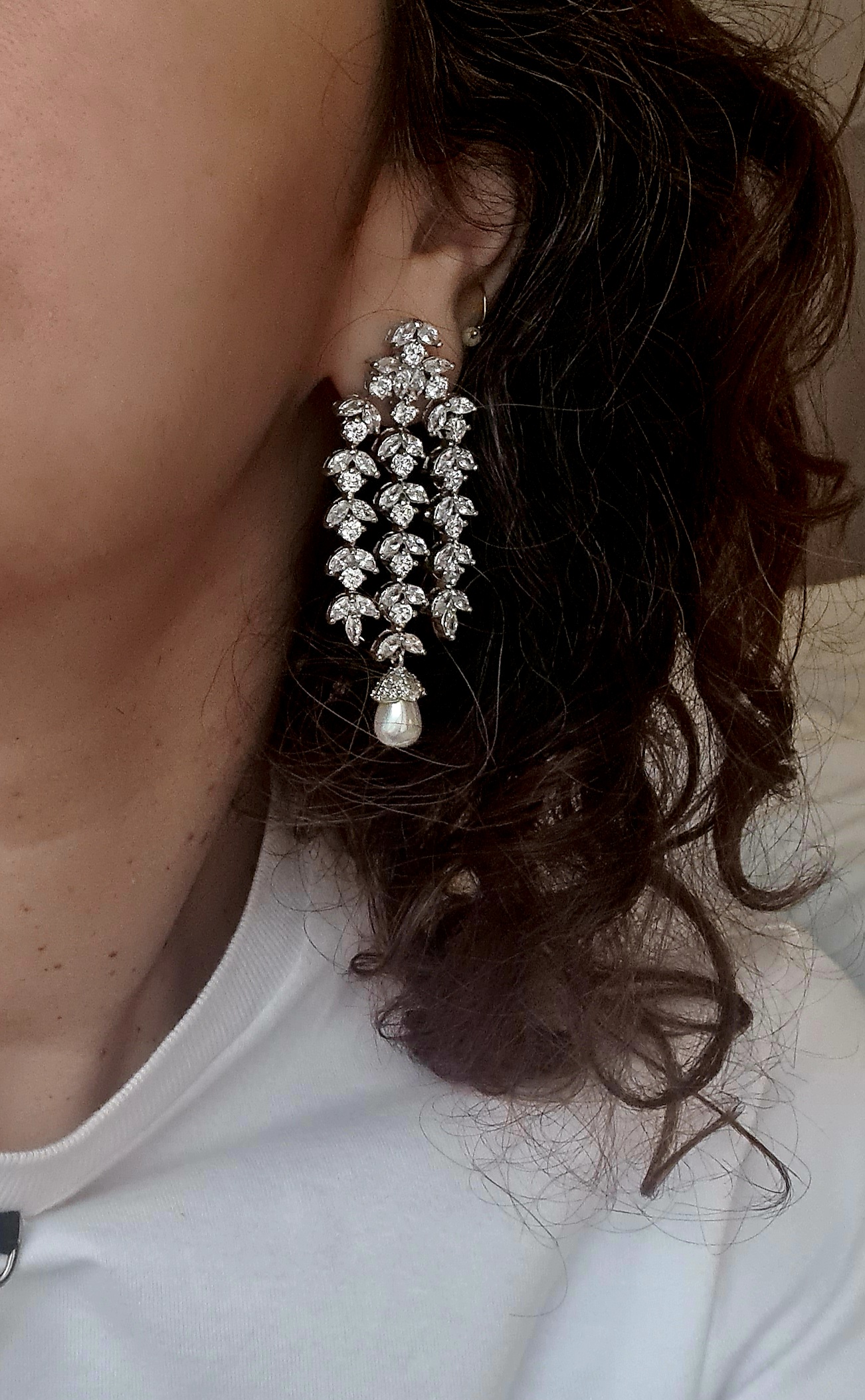 Marquise Waterfall Pearl Drop Dangler Earrings
